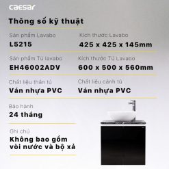 - Mọi thông số kỹ thuật của tủ lavabo treo Caesar L5215/EH46002ADV cao cấp mang tính khách quan có thể có sai số của công cụ đo lường.