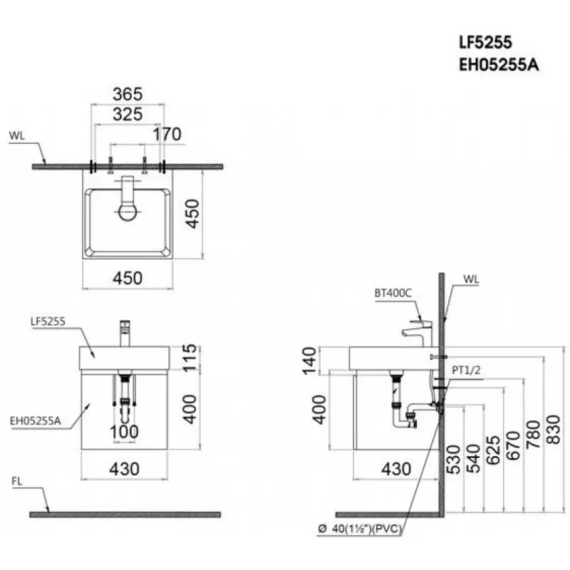 - Tủ lavabo treo tường LF5324 EH213V
