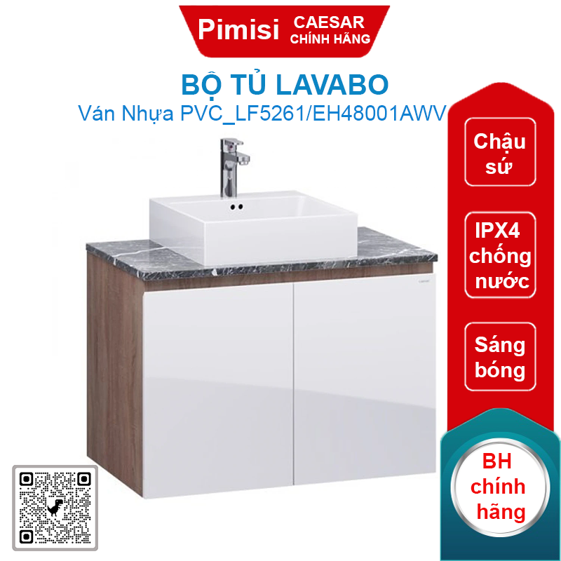 - Nâng Tầm Đẳng Cấp Không Gian, Khẳng Định Phong Cách Gia Chủ: Tủ lavabo PVC Caesar LF5261/EH48001AWV sở hữu khả năng biến phòng tắm từ một không gian chức năng đơn thuần trở nên đặc biệt, sang trọng và “có gu”.