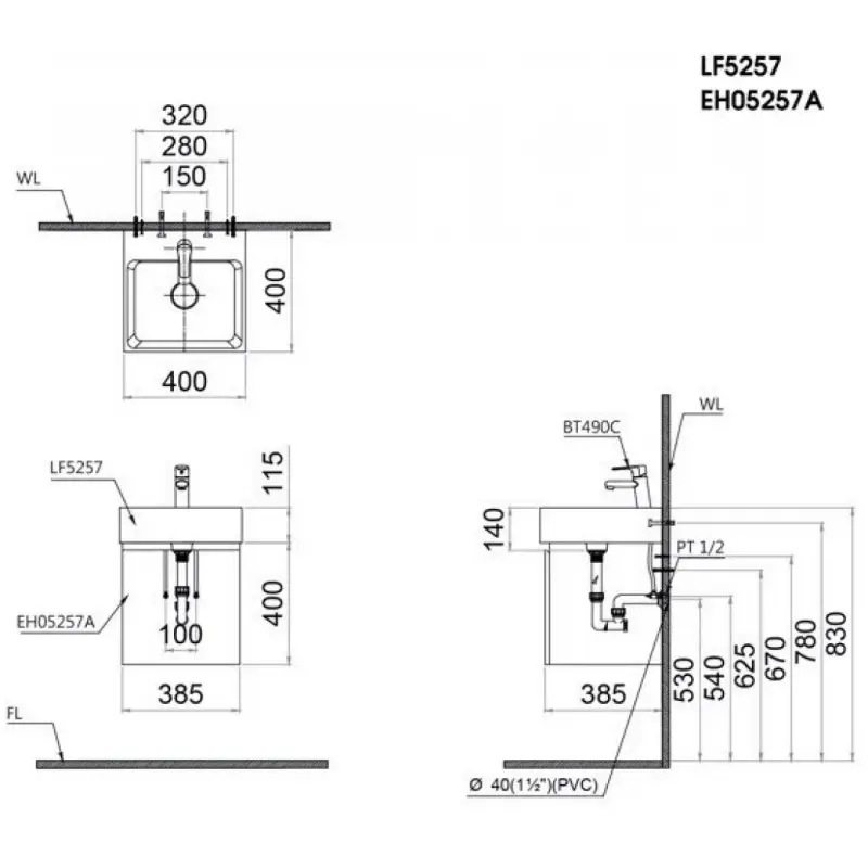 Bộ tủ lavabo treo tường Caesar LF5257/EH05257AWV màu trắng