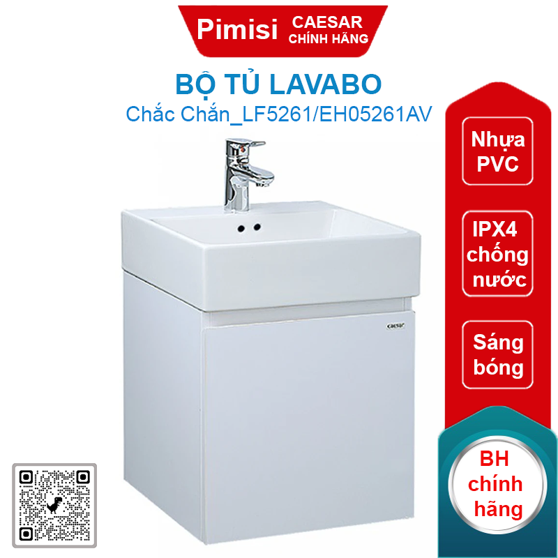 - Vật Liệu Nhựa PVC Chống Nước Tuyệt Đối 100%: Toàn bộ thân tủ lavabo treo tường Caesar LF5261/EH05261AV được làm từ tấm nhựa PVC đặc, một vật liệu hoàn toàn “miễn nhiễm” với nước và độ ẩm, đảm bảo không bao giờ bị trương nở, phồng rộp hay ẩm mốc ngay cả trong môi trường phòng tắm luôn ẩm ướt.
