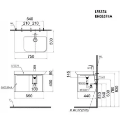 Thông Số Kỹ Thuật Chi Tiết Của Bộ Tủ Lavabo Treo Tường Caesar LF5374/EH05374AV: