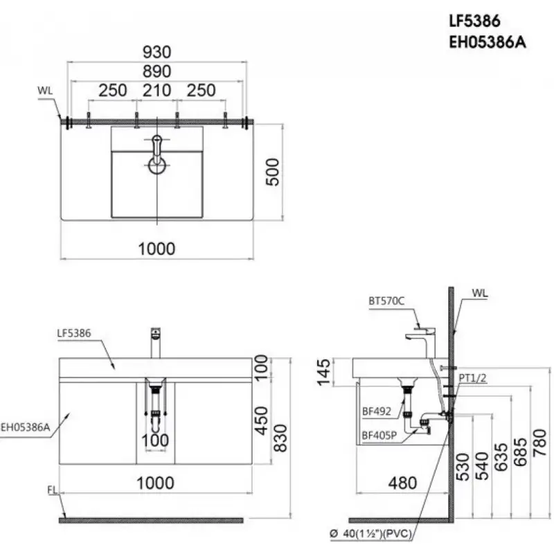 Bộ tủ lavabo treo tường Caesar LF5386/EH05386AV màu trắng