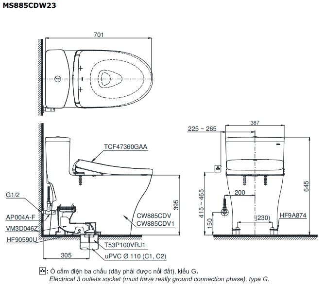 Bàn cầu một khối kèm nắp rửa điện tử WASHLET dòng S7 – TCF47360GAA