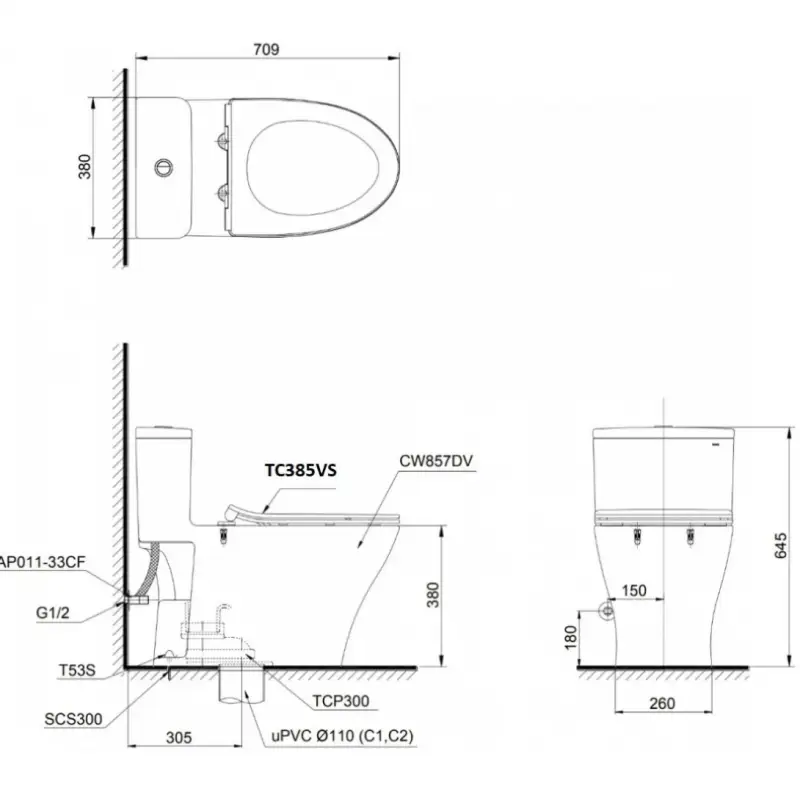 Thông Số Kỹ Thuật Chi Tiết Của Bồn Cầu 1 Khối TOTO MS857DT3/TC385VS: