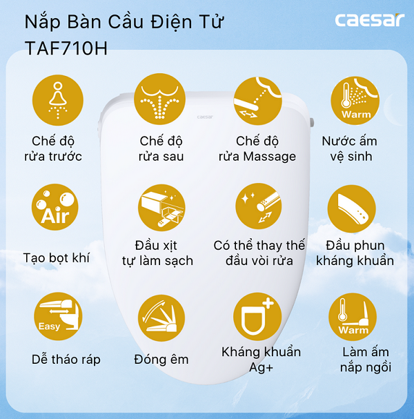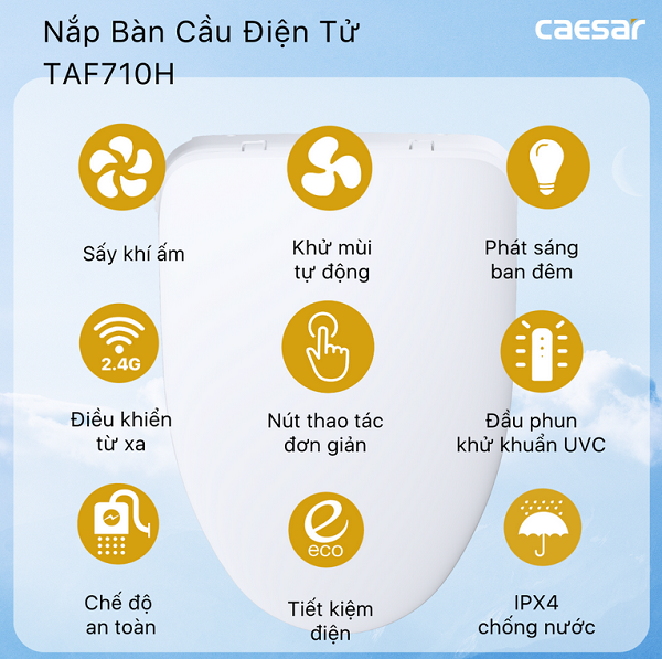 Bồn cầu 2 khối kết hợp nắp điện tử Caesar CD1341-TAF710H