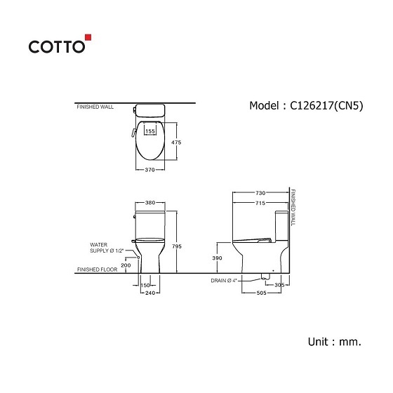 Bồn cầu 2 khối nắp rửa cơ COTTO C126217(CN5)