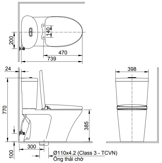 Kích thước (DxRxC): 739 x 398 x 770 mm