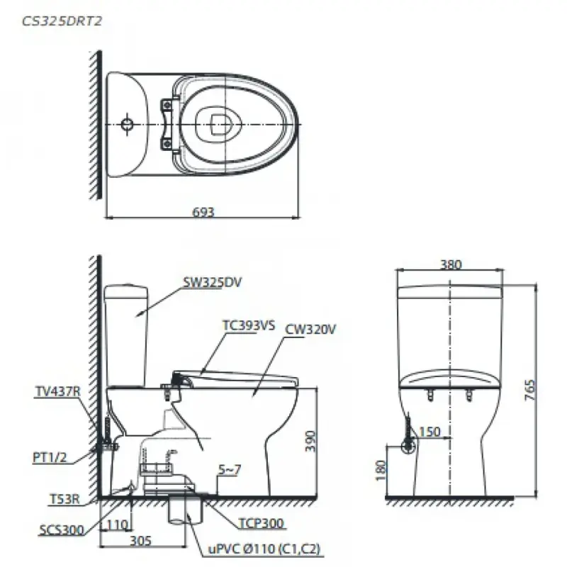 Bồn cầu 2 khối TOTO CS325DRT2 nắp TC393VS