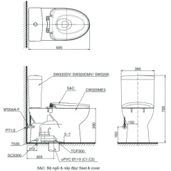 Thông Số Kỹ Thuật Chi Tiết Của Bồn Cầu 2 Khối TOTO CS325DRT8/TC600VS: