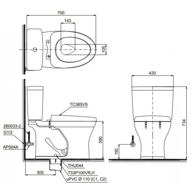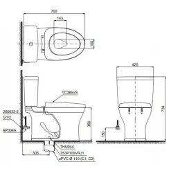 Bồn cầu 2 khối TOTO CS735DT3 nắp TC385VS