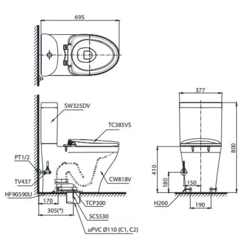 Thông Số Kỹ Thuật Chi Tiết Của Bồn Cầu 2 Khối TOTO CS818DT2/TC393VS:
