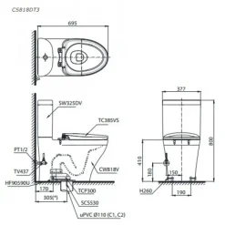Thông Số Kỹ Thuật Chi Tiết Của Bồn Cầu 2 Khối TOTO CS818DT3/TC385VS: