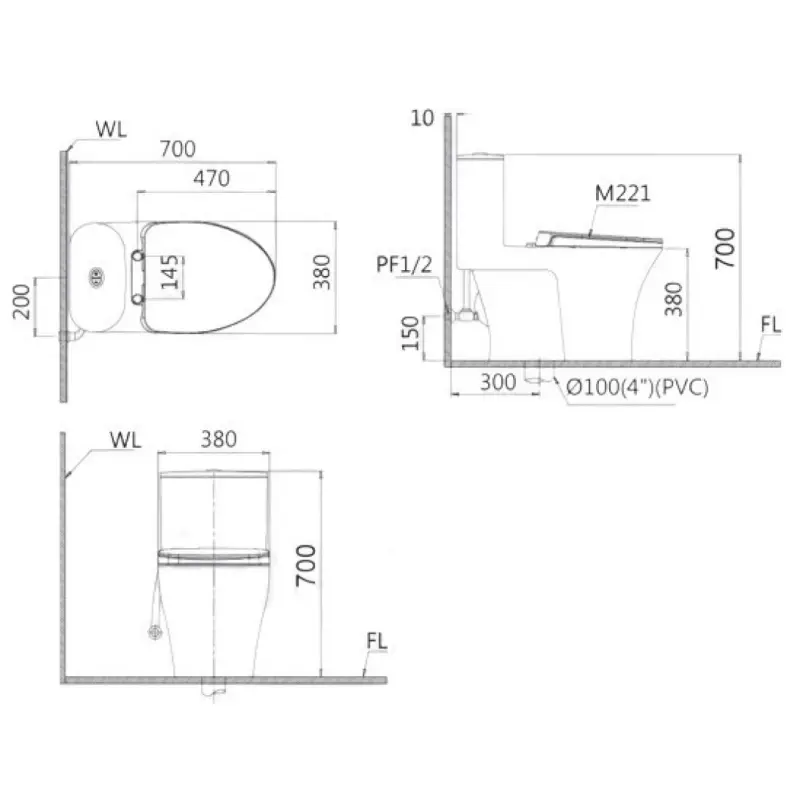 Thông Số Kỹ Thuật Chi Tiết Của Bồn Cầu Caesar C1395 1 Khối: