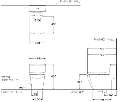 Thân dài, S Trap (305mm), Nắp đóng êm