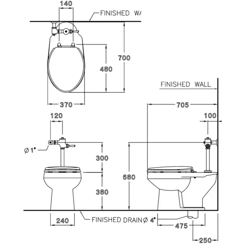 - Kích thước: 370 x 700 x 380 mm (Xem chi tiết ở phần hướng dẫn lắp đặt).