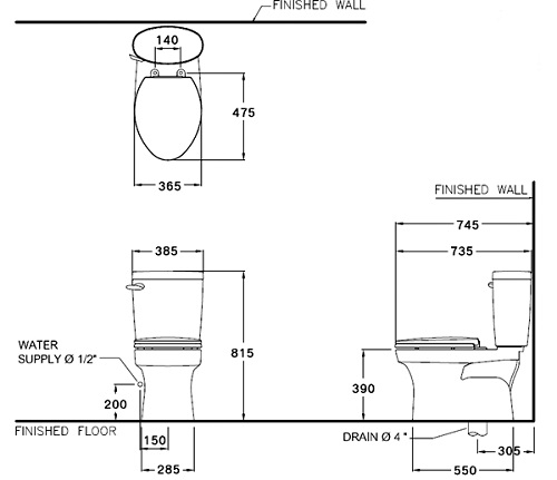 Thân dài, S Trap (305mm), Nắp đóng êm