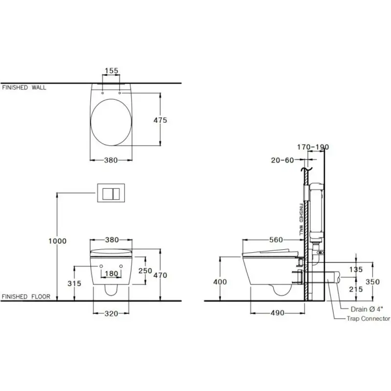 - Kích thước: 560 x 370 x 470mm (Xem chi tiết ở phần hướng dẫn lắp đặt).