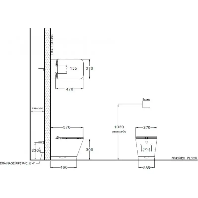 - Kiểu thoát: Thoát ngang (xả vào tường).