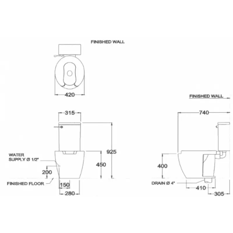 - Kích thước: 420 x 740 x 925 mm (Xem chi tiết ở phần hướng dẫn lắp đặt).