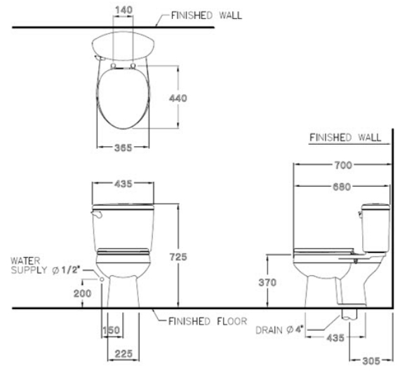 Tâm xả: 305mm