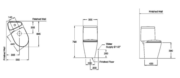 Dung tích xả: 3/4.5L (Tiết kiệm nước)