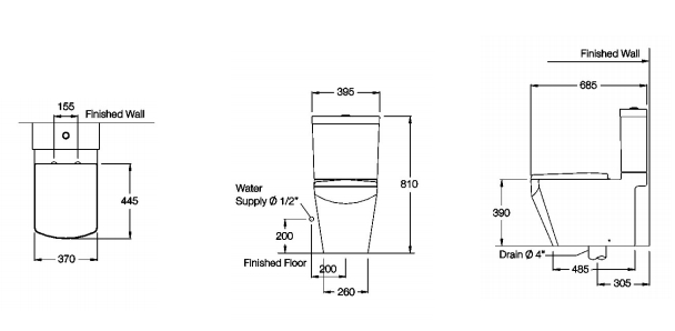 Dung tích xả: 3/4.5L (Tiết kiệm nước)