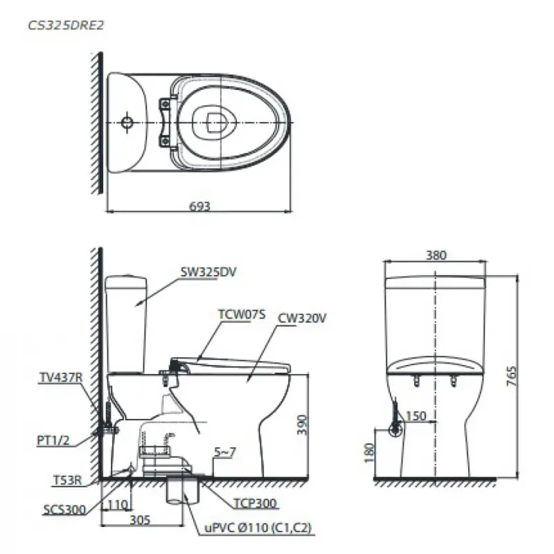 Bồn cầu hai khối nắp cơ TOTO CS325DRE2