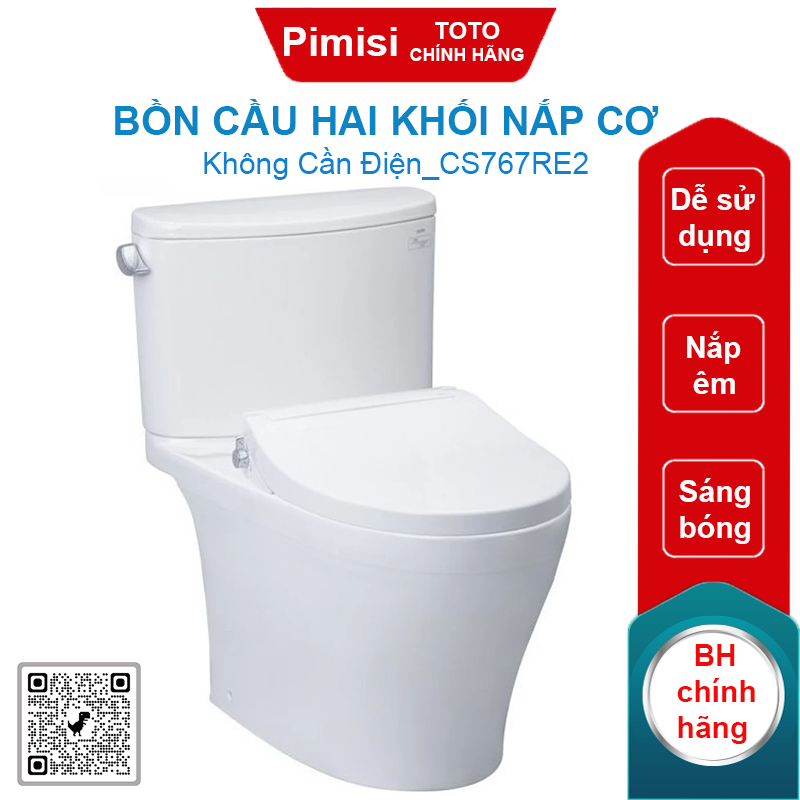 - Tên sản phẩm: Bồn cầu hai khối nắp cơ TOTO CS767RE2.