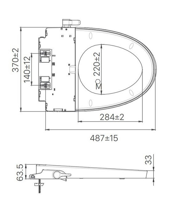 KT nắp: 370 x 500 x 63 mm (dài x rộng x cao)