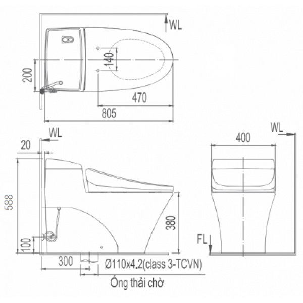 Đã bao gồm van vặn khóa, đế thải nước TR-SS.