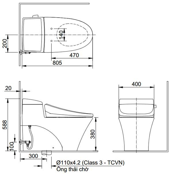 Đã bao gồm van vặn khóa, đế thải nước TR-SS.