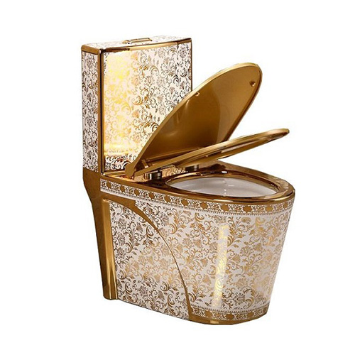 Bồn cầu mạ vàng hoa văn