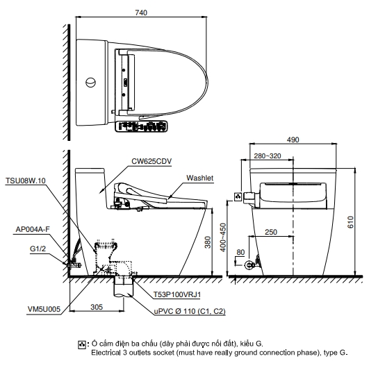 • Sấy khô, khử mùi, sưởi ấm bệ ngồi