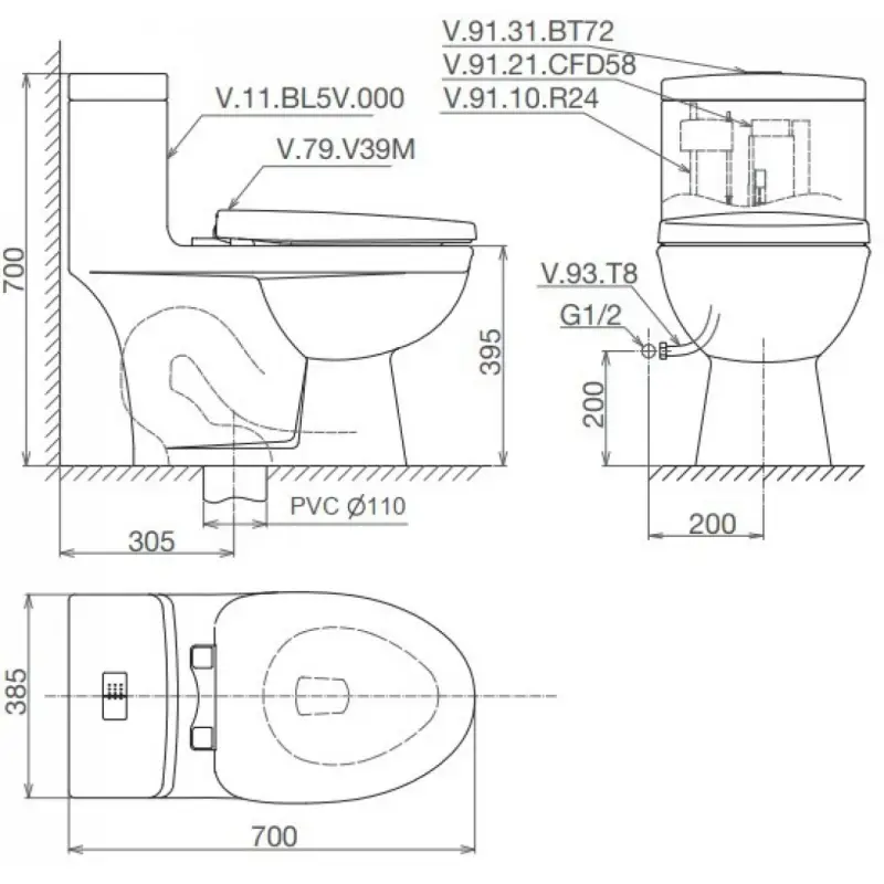 • Chất liệu chính: Sứ vệ sinh cao cấp.