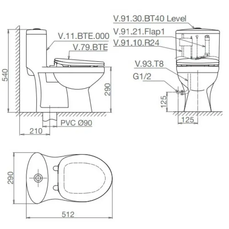Bồn cầu một khối Viglacera BTE 1 chế độ xả nhấn trẻ em