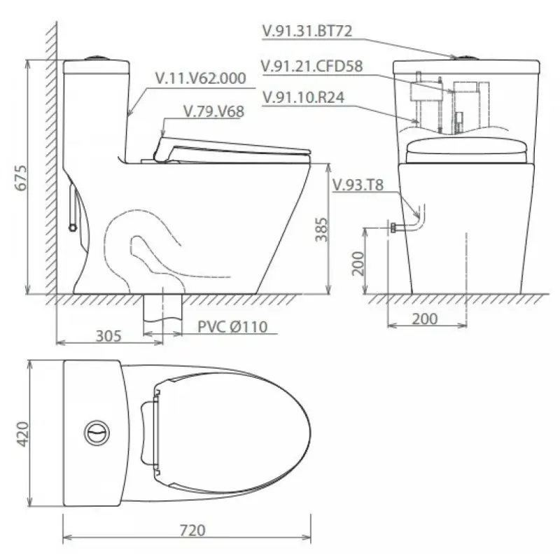 Thông Số Kỹ Thuật Chi Tiết Của Bồn Cầu Một Khối Viglacera V62+VG826+VG853:
