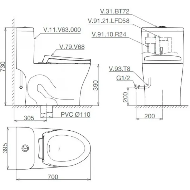 Thông Số Kỹ Thuật Chi Tiết Của Bồn Cầu Một Khối Viglacera V63+VG826: