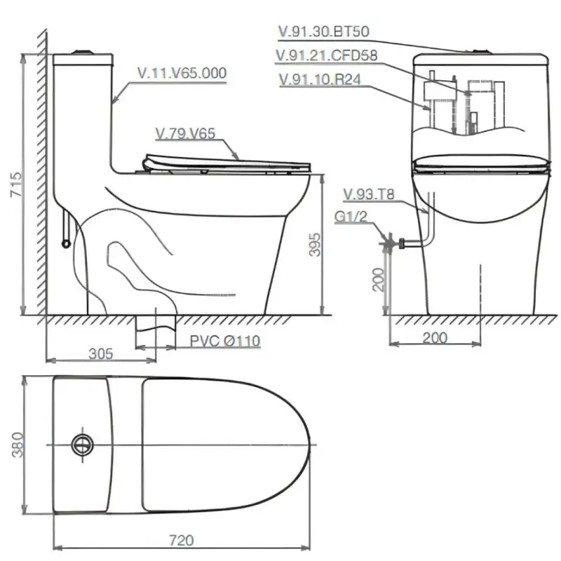 Bồn cầu một khối Viglacera V65+VG826+VG853 xả xoáy nắp êm