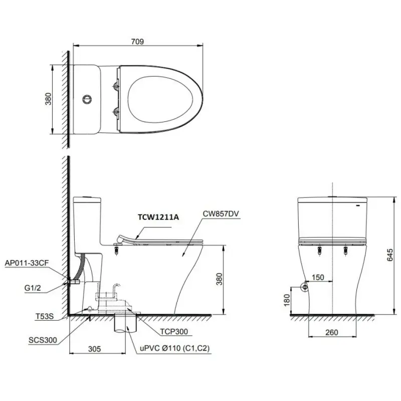 Bồn cầu nắp cơ TOTO MS857DE4/TCW1211A