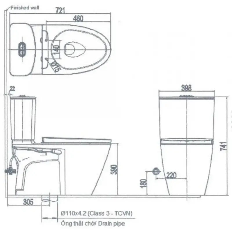 - Hệ thống xả: Xả Siphon dạng nhấn 2 mức 4.5L/3L.