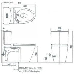 - Kích thước bồn cầu: 720 x 372 x 740 mm.