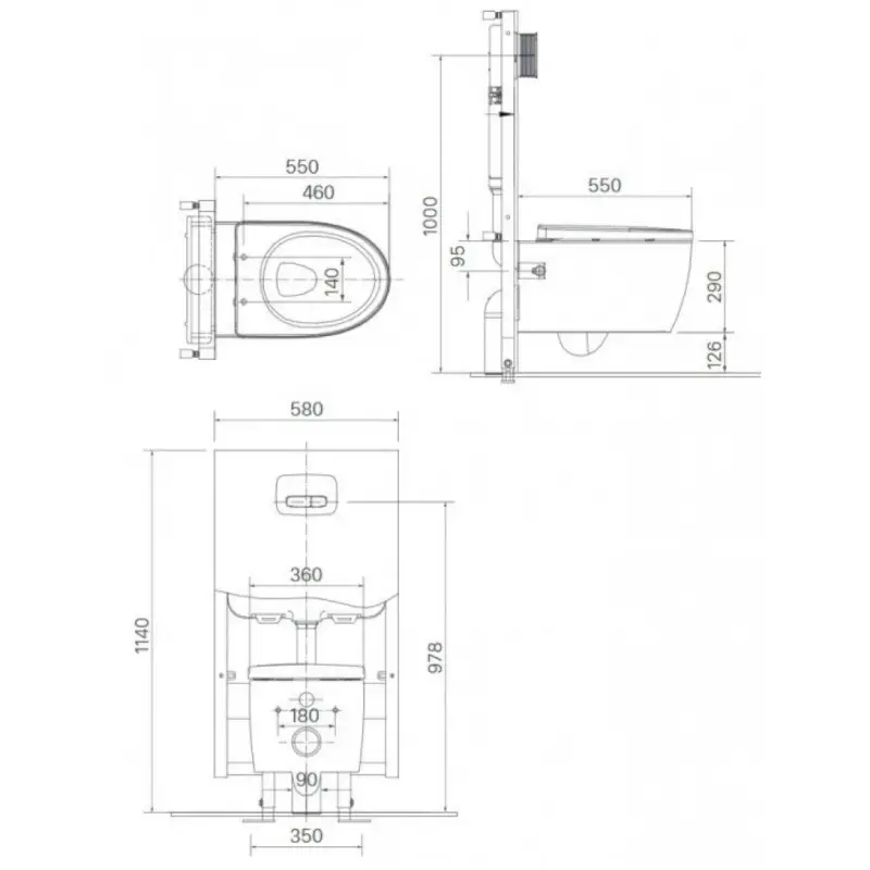 - Kích thước bồn cầu: 550 x 360 x 290 mm.