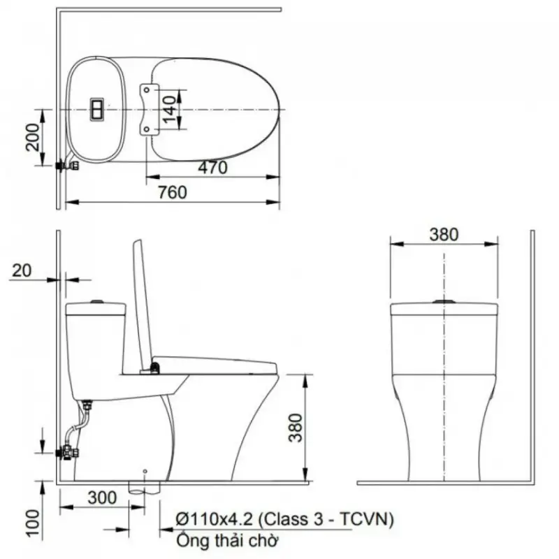- Hệ thống xả: Xả nhấn 2 chế độ 4.5L/6.5L.