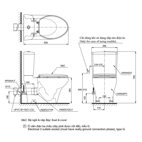 Bồn cầu nắp điện tử TOTO CS945PDW11