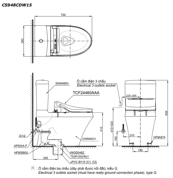 • Hệ thống xả xoáy Tornado siêu mạnh, siêu êm, tiết kiệm nước