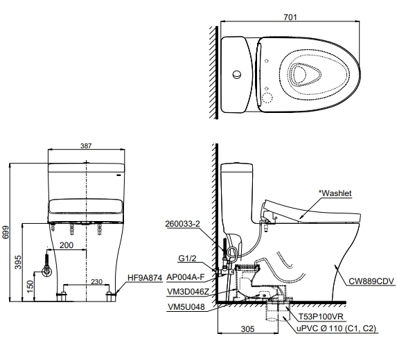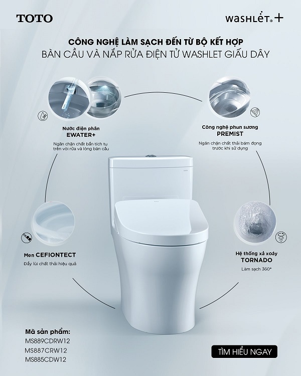 Bàn cầu một khối, kèm nắp rửa điện tử NEW WASHLET