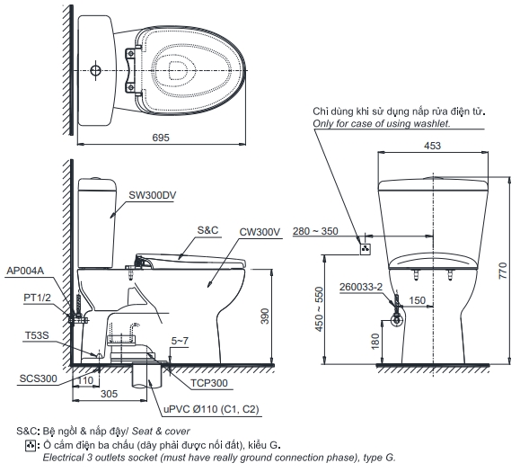 Bàn cầu hai khối, nắp đóng êm TC385VS