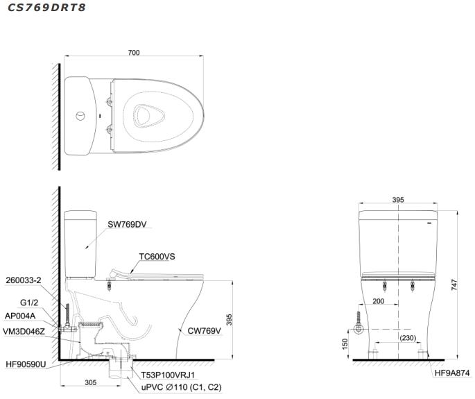 Bàn cầu hai khối, nắp đóng êm TC600VS