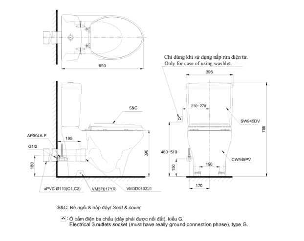 Bàn cầu hai khối, nắp đóng êm TC600VS